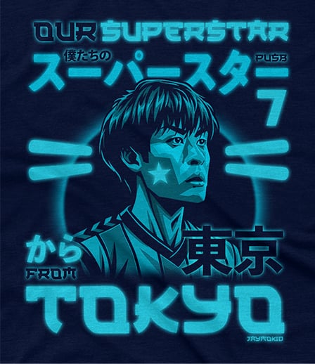 Capturing the diminutive right winger, wrapped in vibrant Japanese-inspired lights and striking kanji-style typography that nods to his roots.